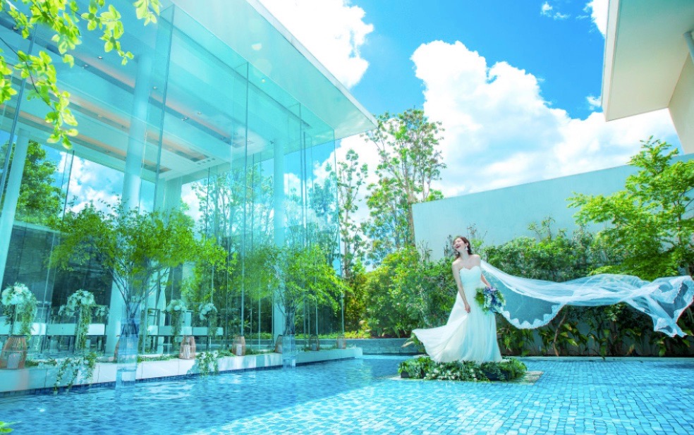 自然に囲まれた2つの挙式会場では、水や太陽の光も感じられると人気。
