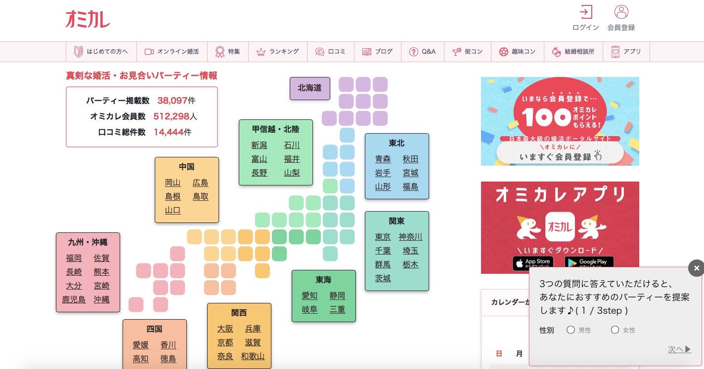 『オミカレ』という婚活パーティーのポータルサイトがあります。